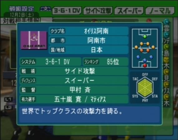 攻撃に関してはじゅうぶん得点は取れているので、守備で何人か高レベルの選手が欲しいところ。年始で良い新人がリストアップされていることを願っています。