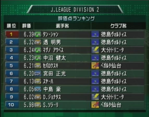 - 【J2 ランキング】得点 アシスト 評価点